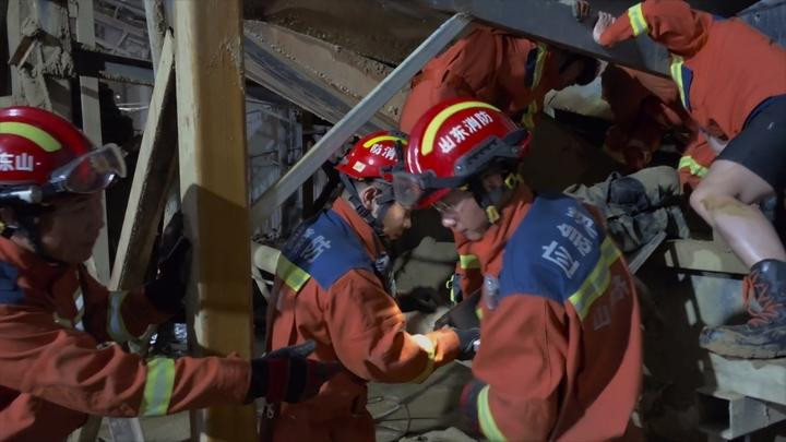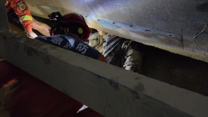 济南一工人不慎卷入碎沙机 消防员紧急救援